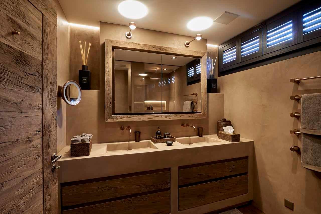 On the basement level of the chalet is a delightful wellness area with a sauna. A ski room with plenty of storage and heated boot warmers is also located on this level.