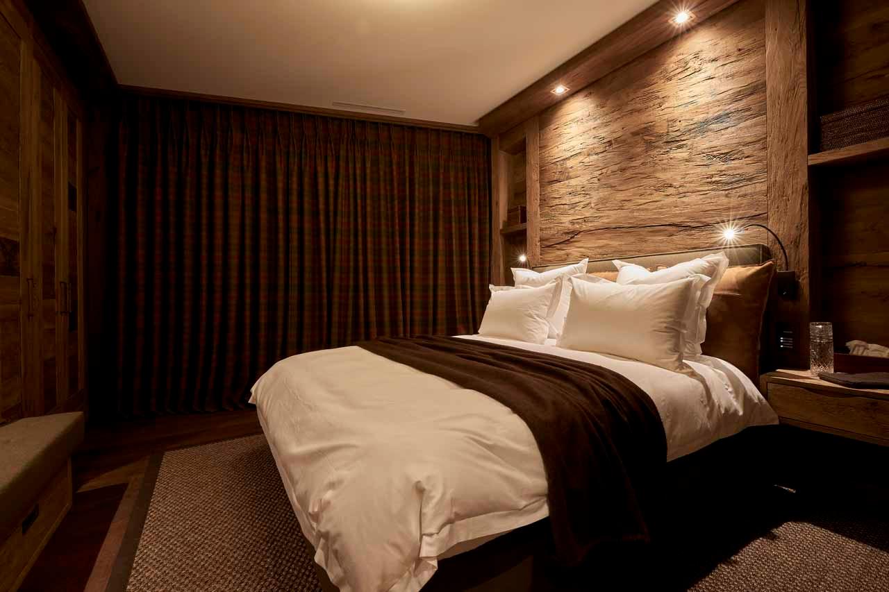 The style of the penthouse apartment combines traditional alpine elements with a more modern style of mountain architecture.