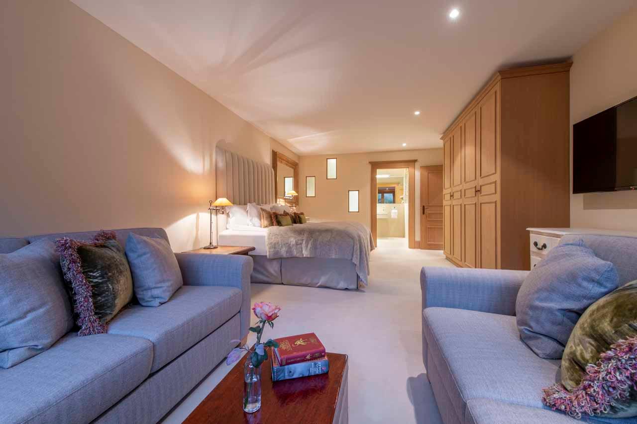 Five opulent bedrooms are located on the first floor of the chalet. Particularly luxurious is the master suite with its inspiring mountain views from the king-size bed and bathtub. There are a further four twin/double bedrooms, each with Sky TV and an en-suite bathroom.
